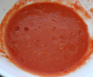 Now add finely chopped onions. Sauté till they turn pink. Then add tomato puree. Fry till the whole mix gets nicely cooked.