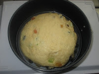 Now roll it out or flatten with hands.Spread the candied fruits, raisins and candied peel evenly.