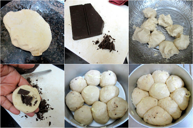 For the second day of Pull apart Breads, after the savory one, I wanted to make something with chocolate so that I could get Chinnu as well. I almost used the same dough as the previous one though I decreased the salt.
