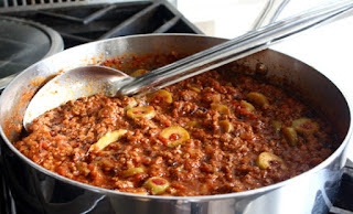 I went with beef here, but pork can be added, as well as chorizo. Often fillers like diced potato and squash are added, but since I serve this over rice, I typically don’t include those. I used to be more into hot, starch-on-starch action when I was younger, but these days, not so much.